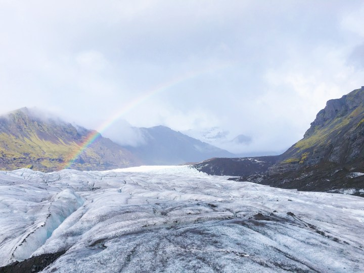 As we climbed back to the top of a glacier a rainbow was waiting for us. It was surreal.